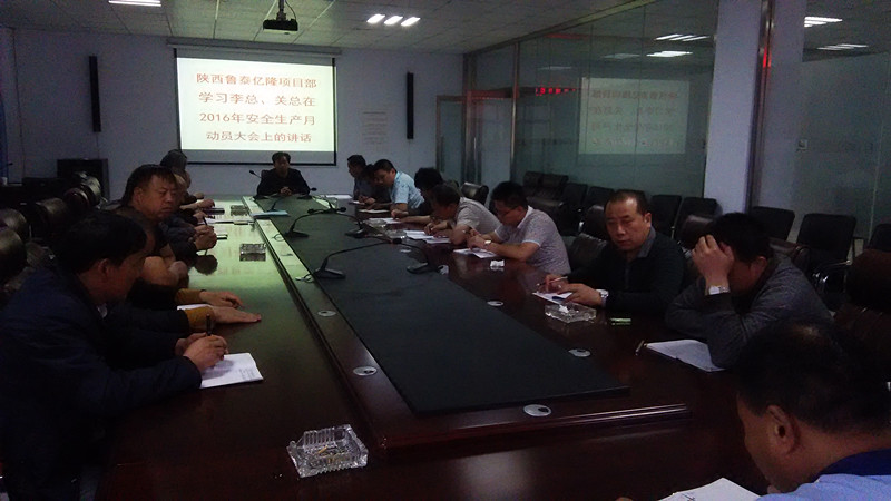 6月3日,陕西鲁泰公司分别在百吉、亿隆项目部召开会议,传达学习李合军总经理、关延忠副总经理"2015-2016年度冬春百日安全竞赛"活动总结表彰暨"安全生产月"动员大会上的讲话。