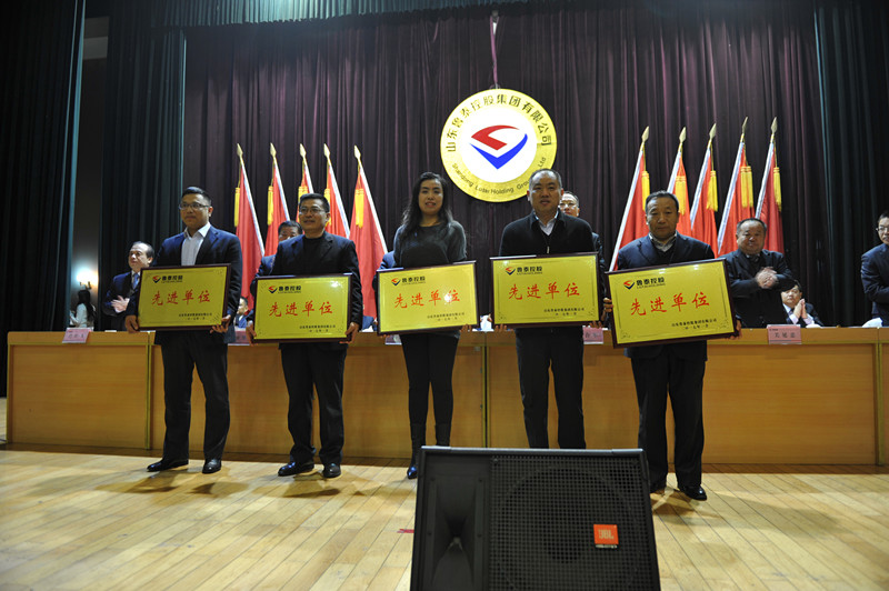 李合军作了题为《深化改革创新,聚力提质增效,为建设"绿色、创新、卓越、幸福"的新鲁泰而努力奋斗》的讲话。李合军在讲话中指出,2016年面对经营市场波动起伏、安全环保压力持续加大的严峻形势,集团公司在市委、市政府和市国资委的正确领导下,突出"改革突破、提质增效"工作主线,全面落实各项决策部署,坚持问题导向,分类施策,精准发力,整体保持了稳中向好的发展态势。一是安全生产总体稳定。二是经济运行质量稳中向好。集团整体实现销售收入同比增长5.1%;实现利润同比增长264.9%;实现利税同比增长59.1%。三是管理创效成绩突出。全年原煤单位材料消耗同比下降14.3%,烧碱单耗原盐同比下降1.13%,树脂单耗电石同比基本持平,发电标煤耗同比下降5%。原煤完全单位成本同比减少16.33元;烧碱生产成本同比减少15.34元;PVC生产成本同比减少54.72元;发电单位制造成本同比下降0.02元/度。集团公司及各企业管理费用同比下降3.5%。四是经营管控水平持续提升。市场营销创造新业绩,实现产销平衡,销售回款率100%;集中采购管理成效明显,统管通用物资集中采购价格同比下降10.8%;招投标管理效果突出,通过招标采购节约采购资金4010万元;内审工作向纵深延伸。五是深化改革取得新突破。股改上市和资产清理有了新进展;干部人事制度改革和人才培养工作效果明显;内部市场化和服务社会化全面推进;问题管理和重大课题调研初见成效;基本建设管理更加规范。六是转型发展加快推进。对接高新技术产业实现突破,高标准建设了全国首家石墨烯高分子复合材料研发中心,聘请两位国家"千人计划"特聘专家、十多位国内外知名专家,组建了研发团队,与山东大学等高校合作建设的"博士后创新实践工作站"已通过市人社局批准;盐化工项目推进取得新突破;电商物流"两个平台"建设取得新进展;托管服务板块开辟新市场。七是科技创新持续强化。2014-2015年度共评选出科技(管理)创新成果奖20项、小改小革成果奖165项、发明专利62项、优秀论文41篇、先进科技工作者26名。大力弘扬"工匠精神",成功举办集团公司第三届职工职业技能比赛,对获得各专项比赛一等奖的员工授予首届"鲁泰工匠"荣誉称号,培育了"耐心、专注、精细、严谨"的工匠精神,形成了人人学本领、提素质的良好氛围。八是党建和谐工作扎实有力。在极为困难的形势下,集团上下保持了和谐稳定的良好局面。